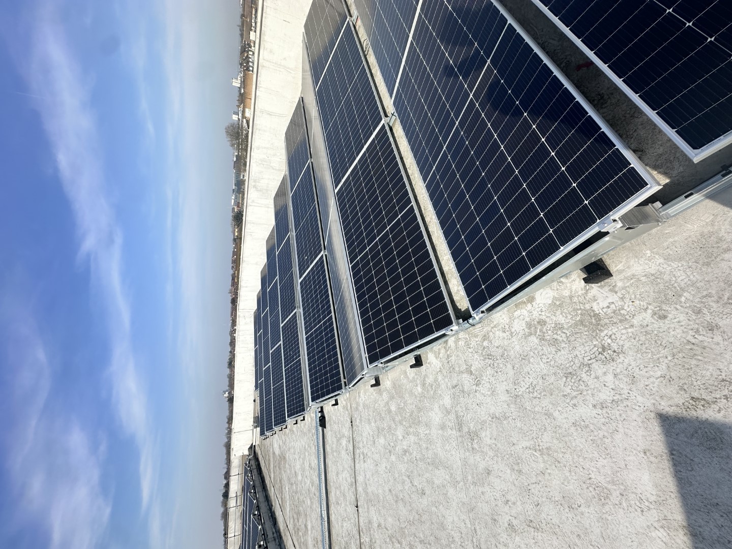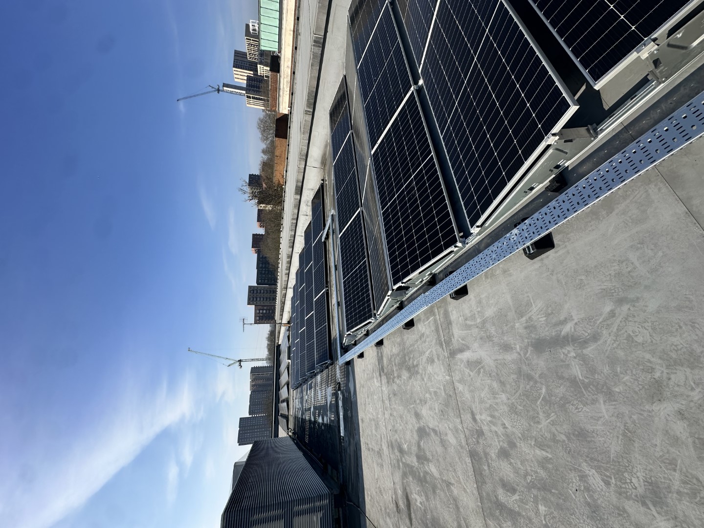 The system uses 148 high-quality JA Solar JAM72S30-550/MR panels, which together produce a total power output of 81.4 kilowatt-peak (kWp). In simple terms, this means the panels can generate a significant amount of electricity to power the leisure centre’s facilities, like lighting, heating, and pool systems. The panels are carefully positioned at specific angles (57° and 237° azimuth with a 10° tilt) to catch as much sunlight as possible throughout the day.